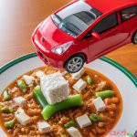 中華料理店でマーボー豆腐を食べている次期型プリウス