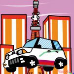東京タワーに登るスズキ ジムニーをスタジオジブリ風に