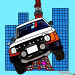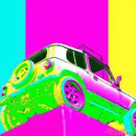 東京タワーに登るスズキ ジムニーをアンディ・ウォーホール風に