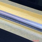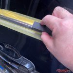 左側ドアのモールにマスキングテープを貼り、左からピカール、WAKO’Sのメタルコンパウンド、ホルツ製ドアモールシャインで施工してみた。