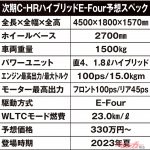 ●トヨタ 次期C-HR(ハイブリッドE-Four)予想スペック