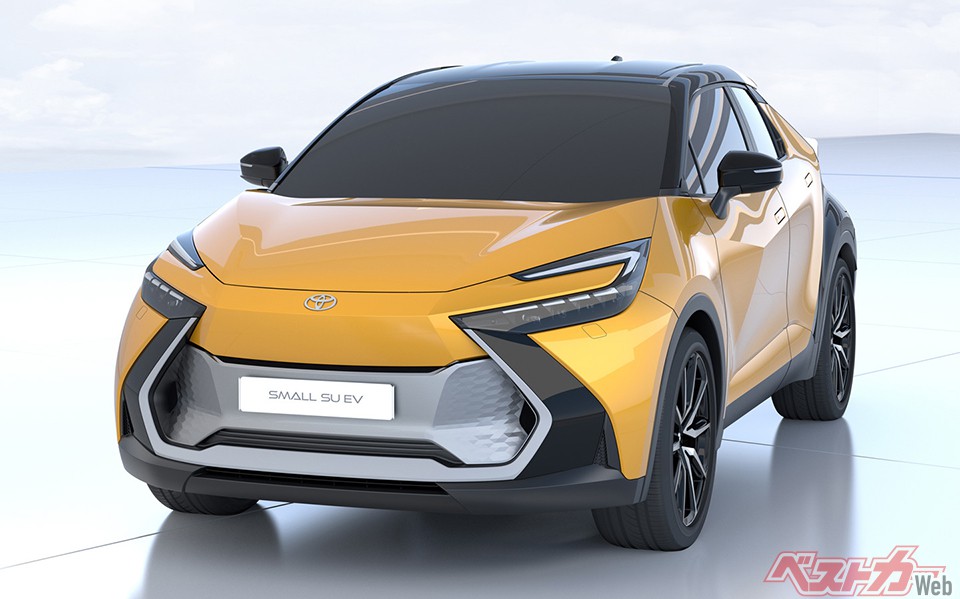 フロントライト周りやサイドパネル、グリルのおおまかな造形は、2021年12月にMEGA WEBでトヨタが開催した「バッテリーEVの取り組みに関する説明会」で披露した「Small SUEV」に酷似している。
