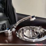 子供やペットの足を洗うのに便利なシャワーフォーセットとシンクを左側キャビネット上面に設定し、シャワーフォーセットは車外に引き出すことが可能。