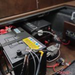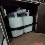 サブバッテリーは鉛タイプの密閉型ディープサイクルバッテリーを搭載。流行のリチウムイオンバッテリーより性能は劣るがリアオーバーハング部分に電装設備を搭載するMRは、万が一、後方からの衝突事故時の破裂等を考えるとバッテリー管理が容易で、また安価で交換できる鉛タイプを搭載しているそうだ。