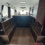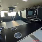 装備類としては、176Wソーラーパネル、2000Wインバーター(矩形波)、FFヒーター、電子レンジなどを標準装備した高機能モデル「MR」の装備に加えて、ナビゲーション、バックカメラ、ドライブレコーダー(前後カメラ)、ETC2.0ユニット、メイン~サブバッテリー切替リレー&スイッチ(ナビ用)、リアフリップダウンモニターを装備。