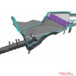 「当初はエアクリーナーボックスをモンキーのようにエンジン前方へ配置する案もありましたが、やはりダックスはプレスフレーム内に収めるべき。ただでさえスペースがないのに容量2.6Lほどのエアボックスを内蔵させるため苦労しました」と吸排気設計PLの倉沢侑史氏。