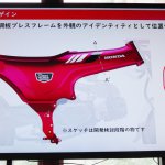 フレームに関して苦労した点を車体設計PLの上坂徹氏に尋ねると「全部です(笑)。現在、社内にプレスフレームの経験や知見がないので、製法をはじめ、本当に一から検討しました。さらにデザインと内容物を成立させながら、強度、剛性、操縦安定性など全てをバランスさせるのが大変でした」と話す。
