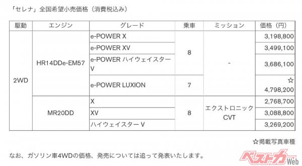 だからこそ、実質的な廉価版として、新型セレナにはガソリン仕様が用意された。