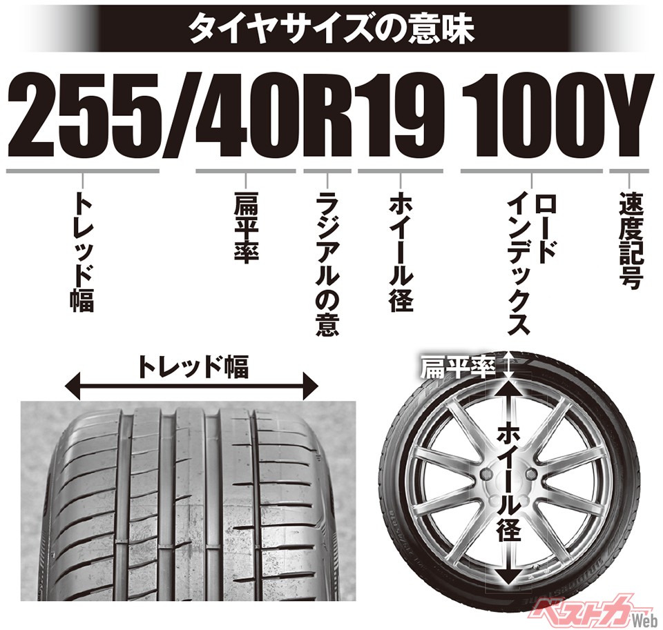 「255/40R19 100Y」といったようにタイヤサイズは示されるが、この例で言えば「100」がロードインデックス。