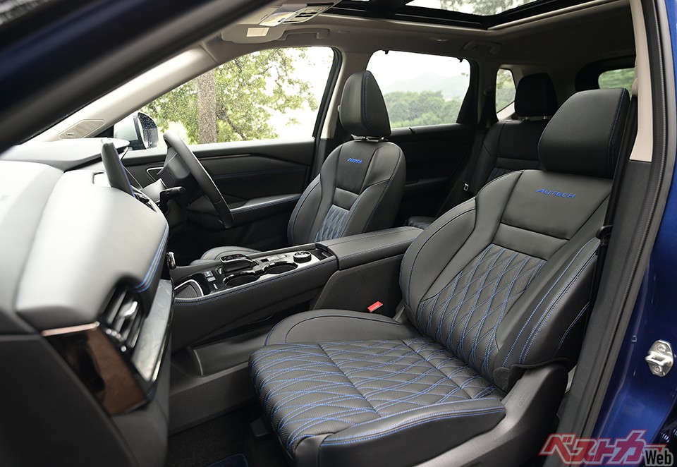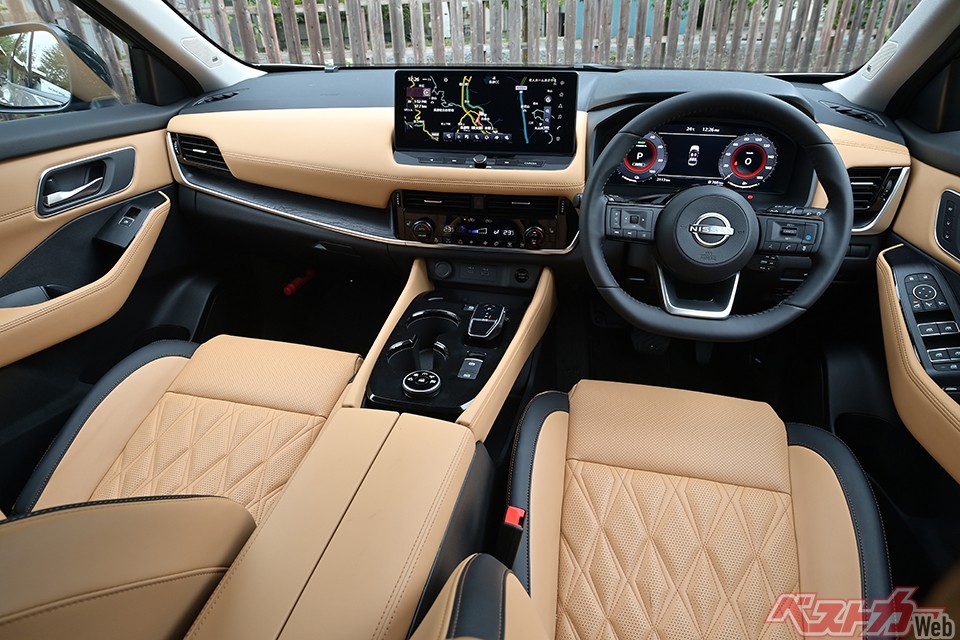 従来のe-POWERは、どうしてもややチープなエンジン音が聞こえたが、VCターボ化によるトルクの向上や静音化が効いているらしく、エクストレイルは断然高級! 乗り心地も高級! インテリアも高級!