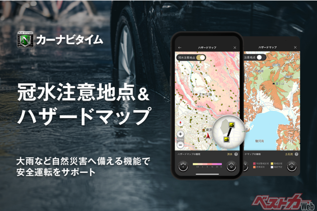 投稿 『カーナビタイム』、「冠水注意地点」と「ハザードマップ」を提供開始 は 自動車情報誌「ベストカー」 に最初に表示されました。